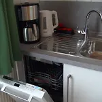 この宿泊には設備の整った台所も備わっています。 Gatersleben, Am Schwabeplanバス停はこのアパート少し離れたの場所にあります。